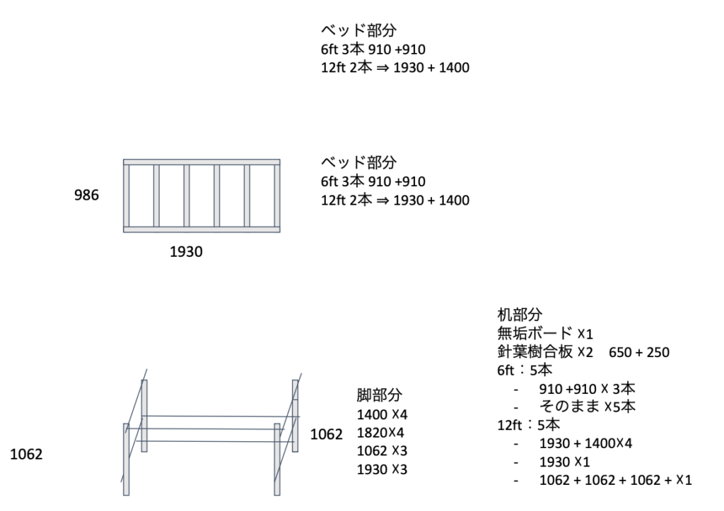 ロフトベッドの制作 計画