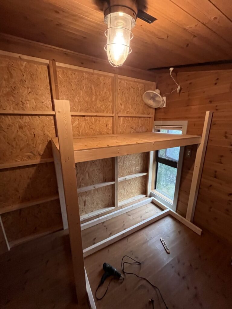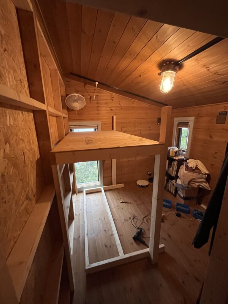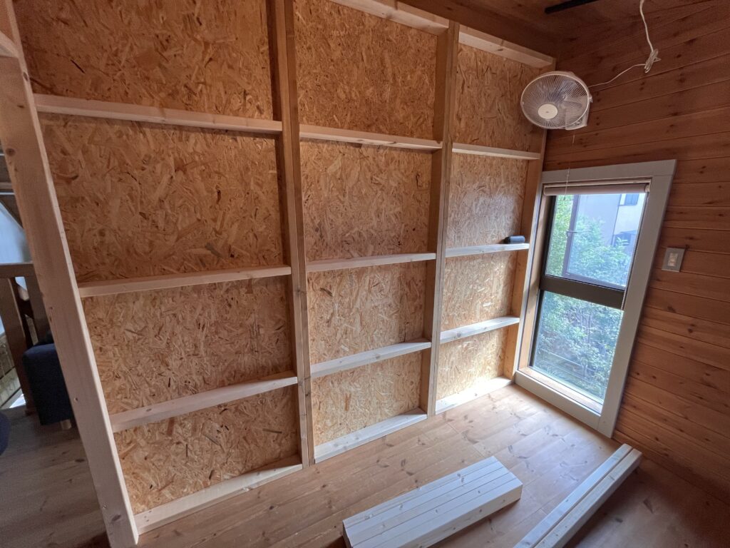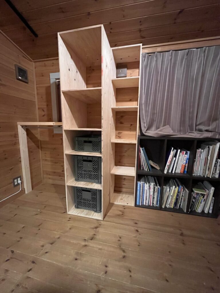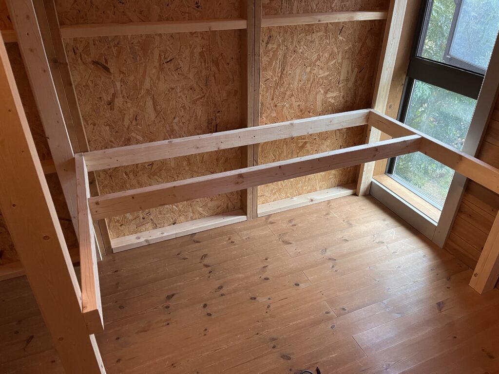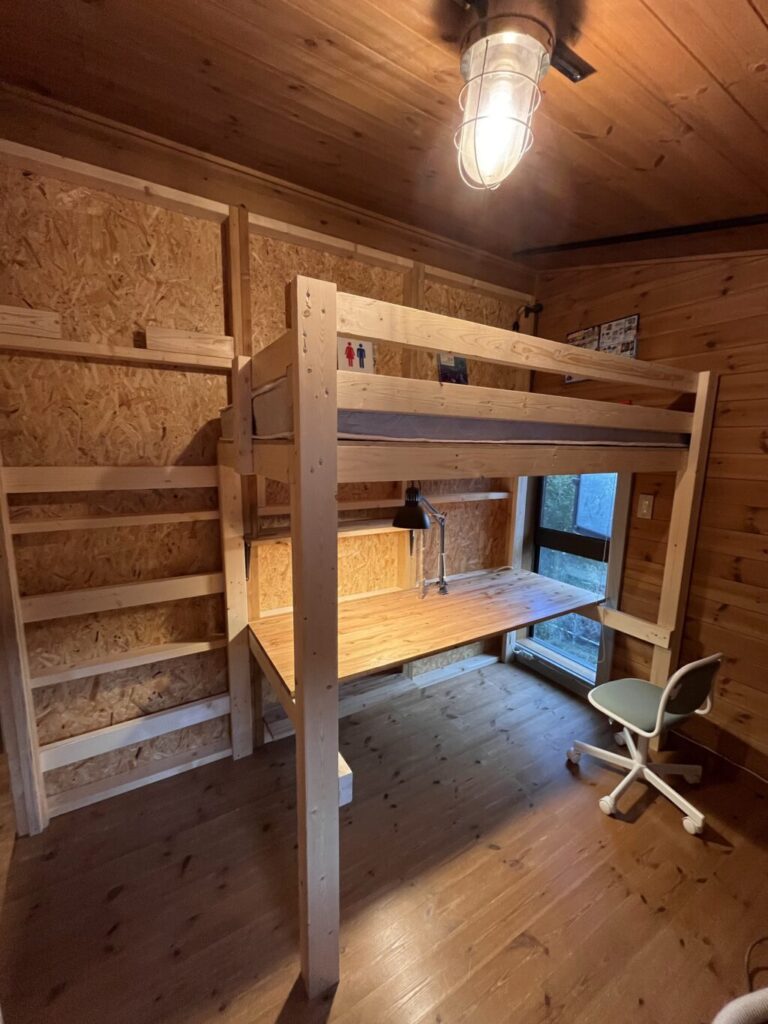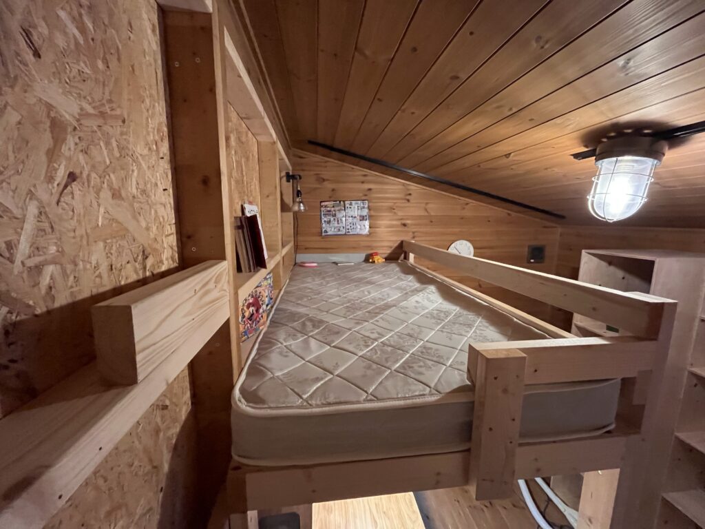 うちは今回壁に足場を増やしてそこから登れるようにしたけど、ロフトベッド作ろうと思う人であればはしごくらい楽勝で作ると思うので、皆さんそれぞれいい感じのはしごを作ったら良いのかなと思います。