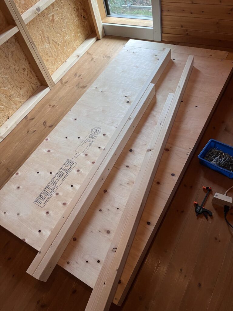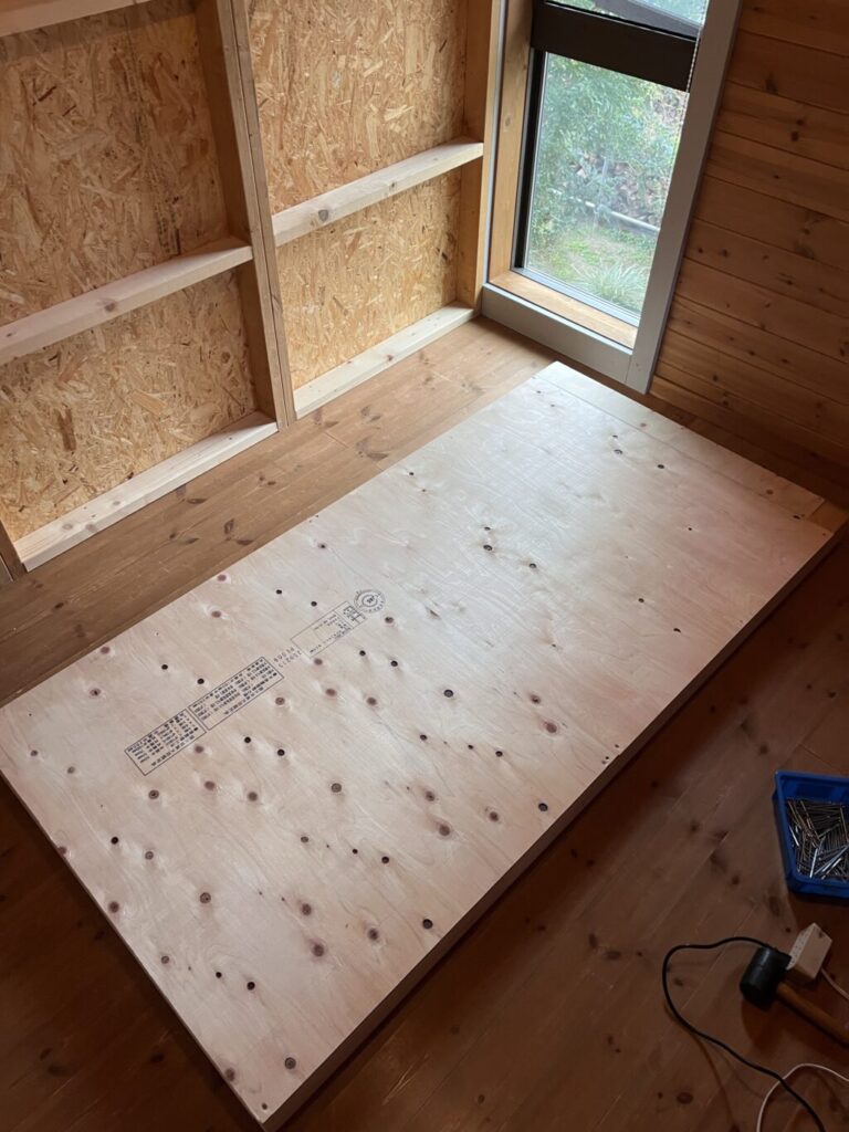 で、合板を乗せてビス止めします。