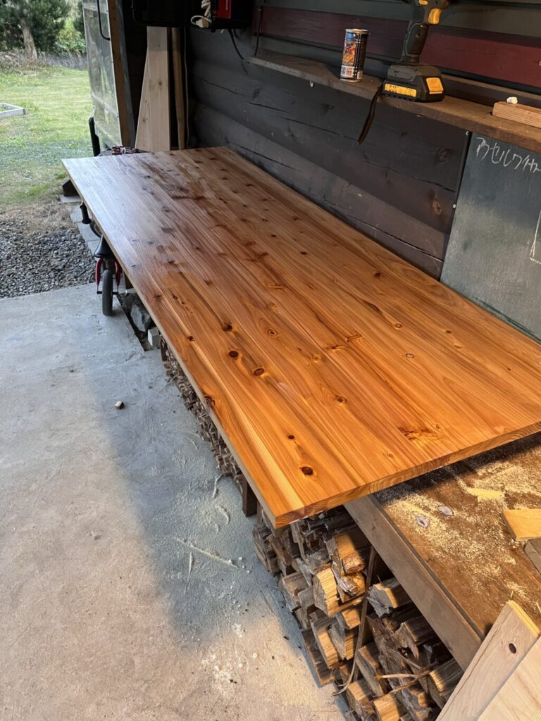 天板は子どもが勉強をするところなのでしっかりヤスリがけしてニス仕上げにしてあげましょう。