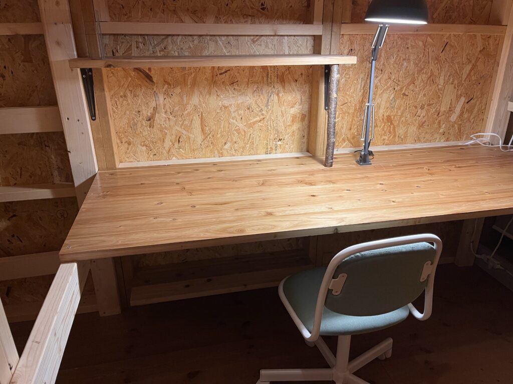 デスクスペースは高さ140cmで作っておけば大人になっても大丈夫です。