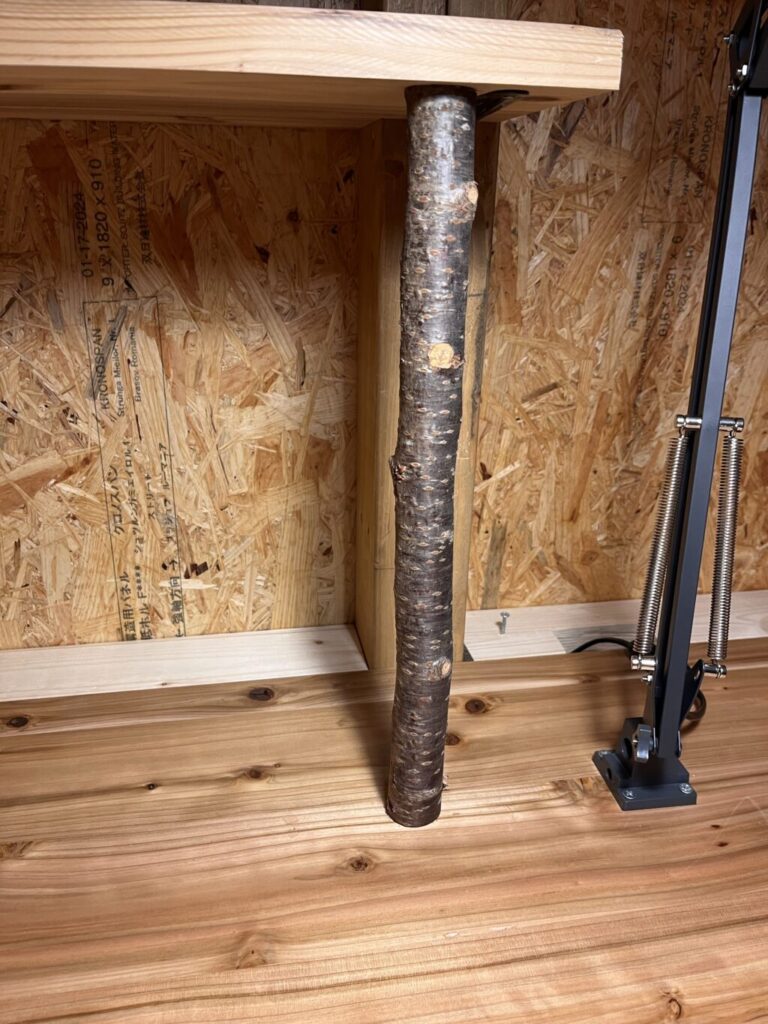クリストファーくんが通う小学校で剪定された桜の枝を本立ての柱に使いました。