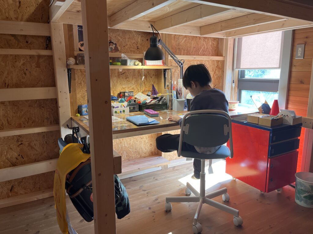 デスクスペースは高さ140cmで作っておけば大人になっても大丈夫です。