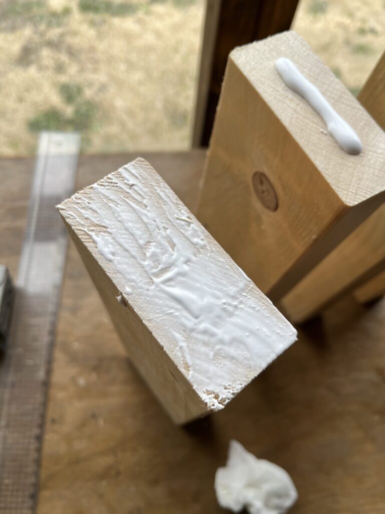 脚にボンドを塗りまして、
