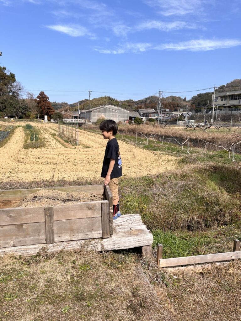 今回はお隣(同級生のご両親がやってる畑)との間にある水路に面した場所に植えます。